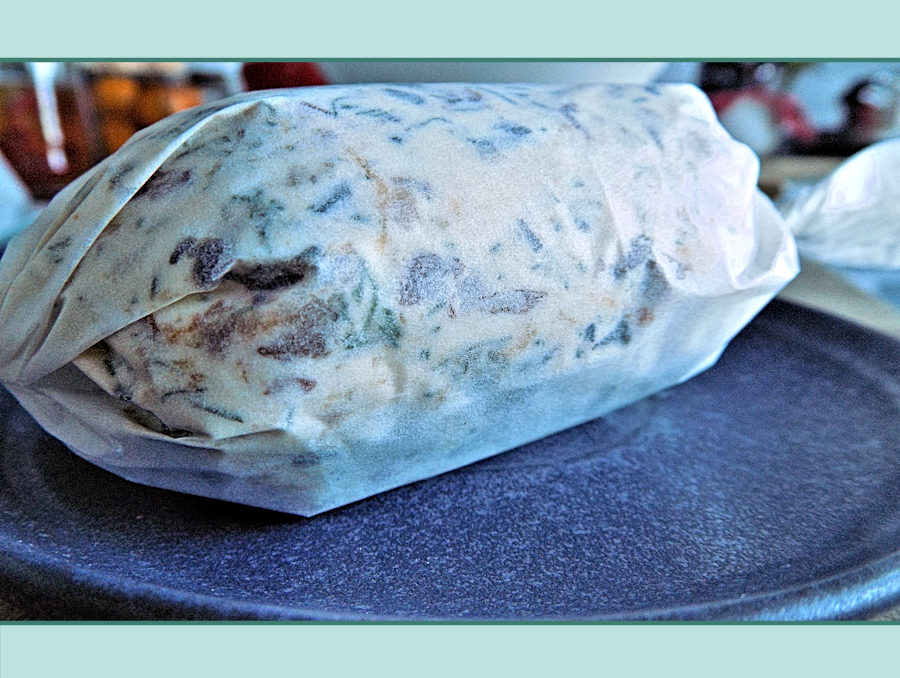 - Scrape the butter mixture onto a piece of greaseproof paper and roll it into a short log (about 2-3cm thick). Twist the ends of the paper to create a compact shape. Place it in the fridge and let it chill for at least 3 hours.